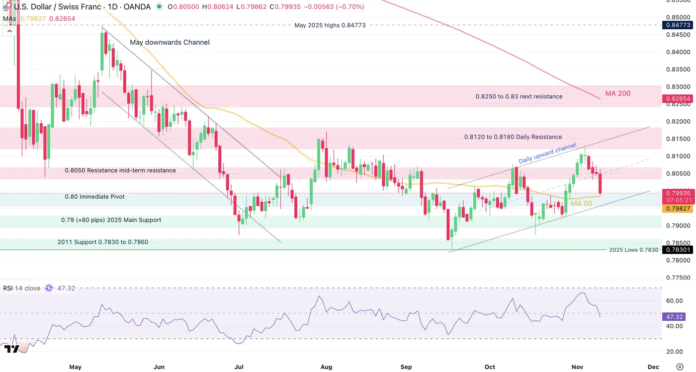 USD/CHF Daily Chart, November 11, 2025 – Source: TradingView