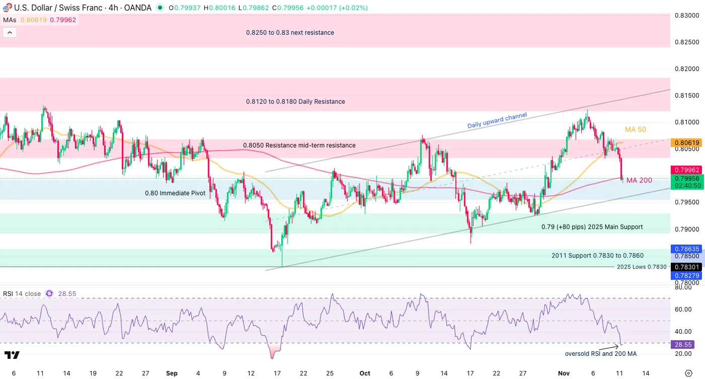 USD/CHF 4H Chart, November 11, 2025 – Source: TradingView