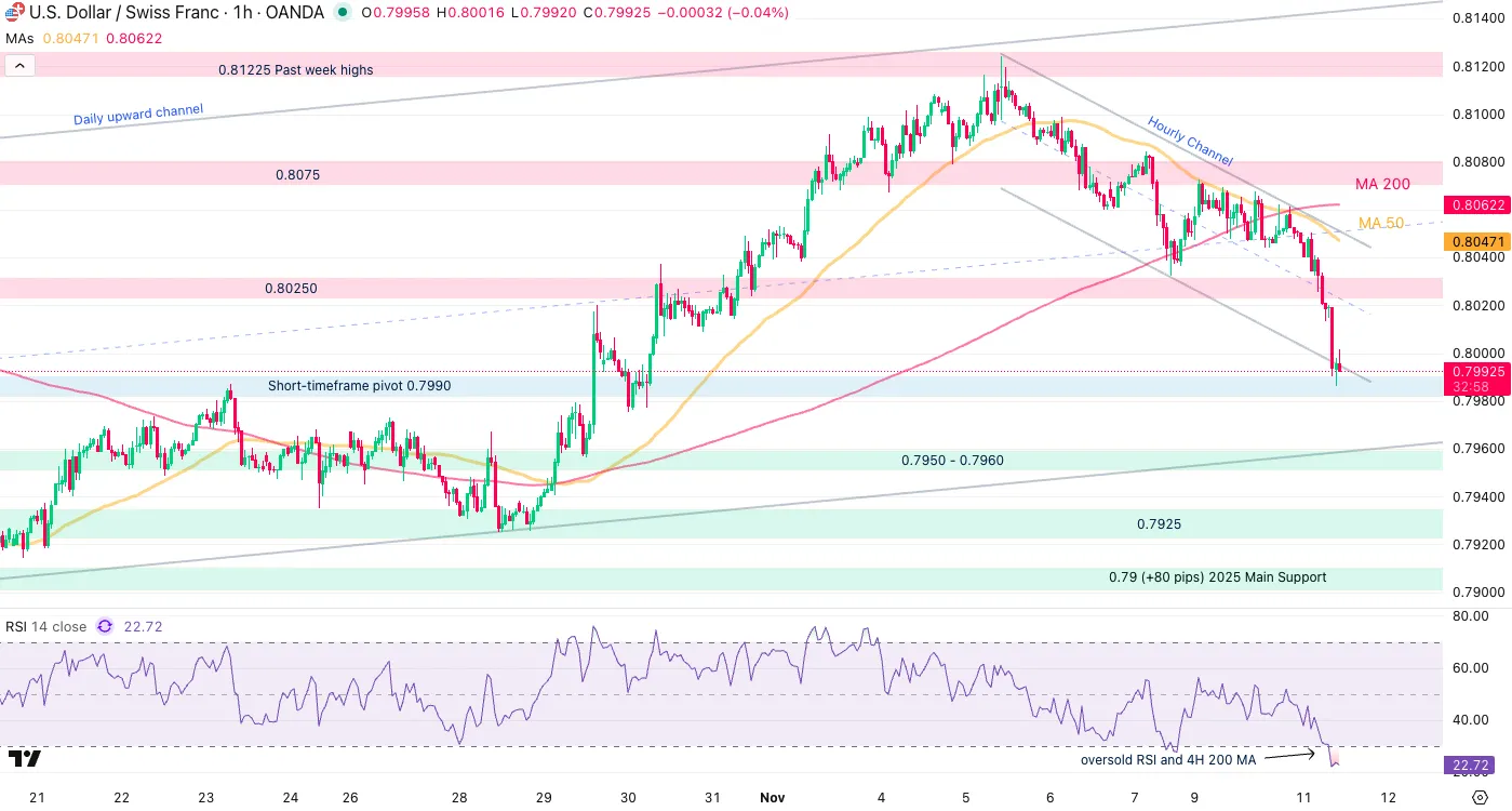 USD/CHF 1H Chart, November 11, 2025 – Source: TradingView