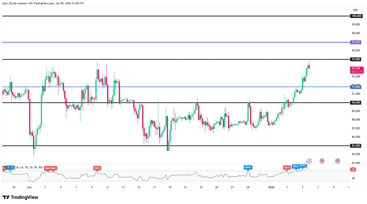Following a lackluster end to 2025, Bitcoin has started 2026 on the right foot. The worlds largest cryptocurrency by market capitalization has risen from around the 87500 mark to a high of 94295 over the first 5 days of the year.