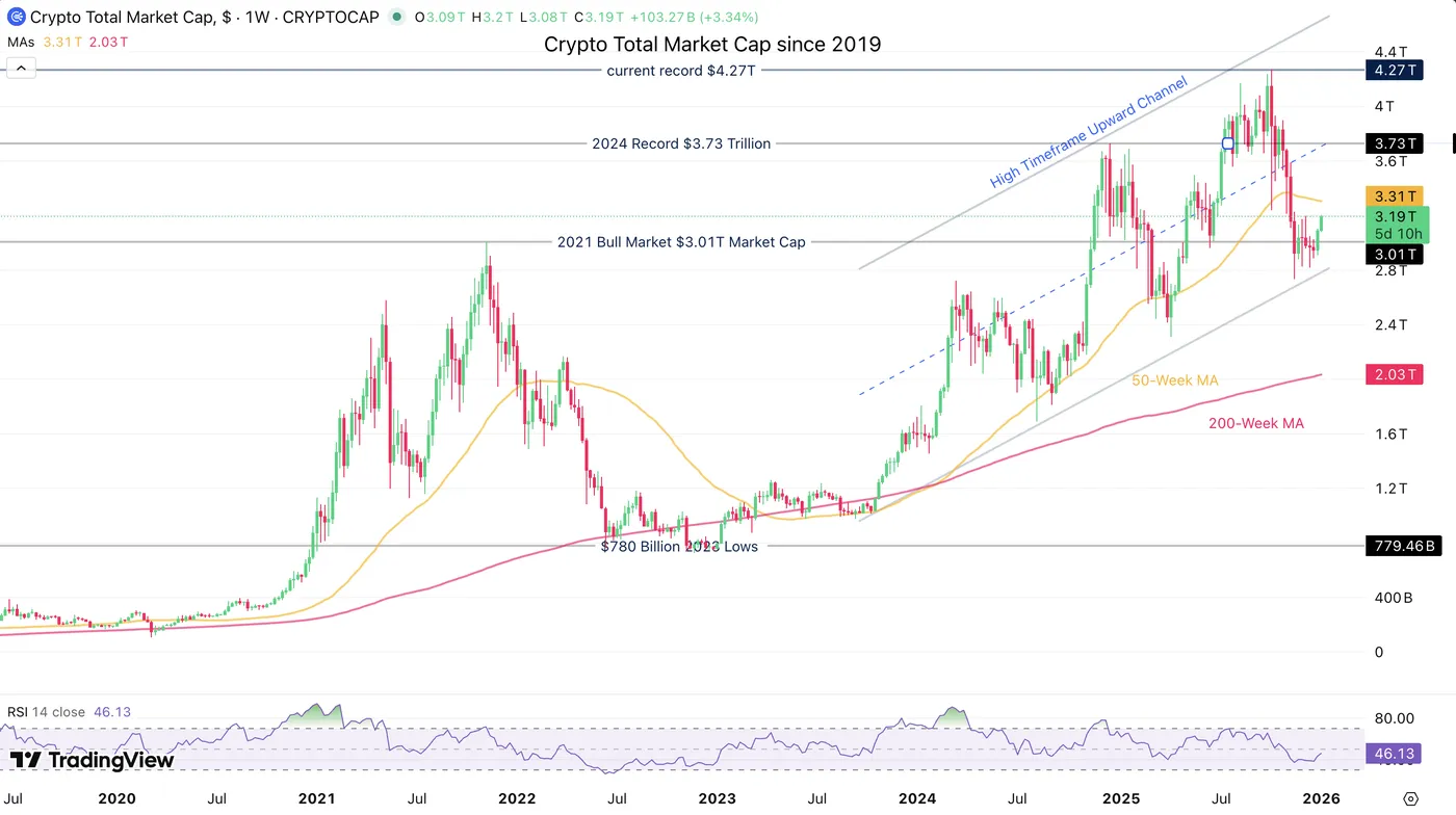 Total Crypto Market Cap Weekly Chart, rebounding from its Channel lows – Source: TradingView