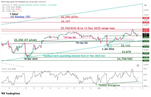 Fig. 1: US Nasdaq 100 CFD index minor trend as of 8 Jan 2026 (Source: TradingView)