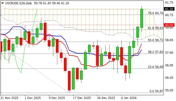 Potential dips should find firm ground above broken $60 level to keep bulls alive, with sustained break above daily cloud to unmask targets at $62.24 (200DMA) and $62.58/80 (tops of Oct 24 / Oct 9).