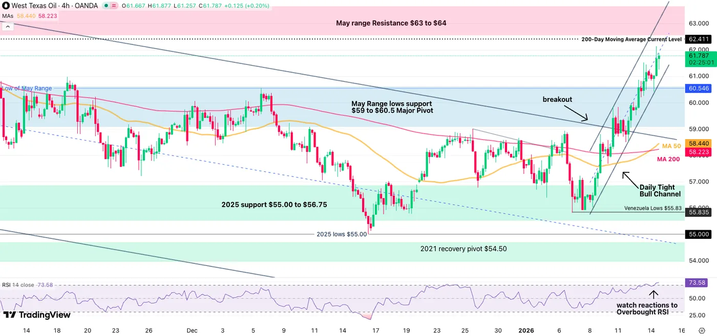WTI Oil 4H Chart – January 14, 2026. Source: TradingView