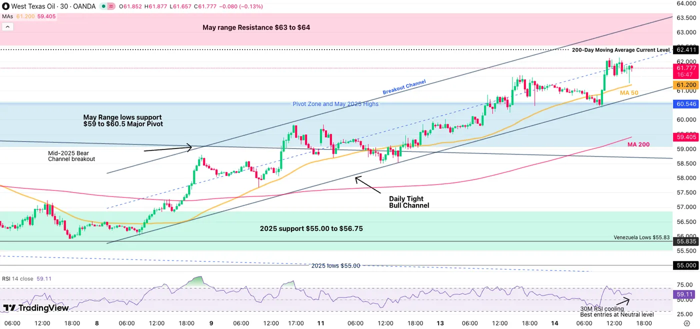 WTI Oil 30M Chart – January 14, 2026. Source: TradingView