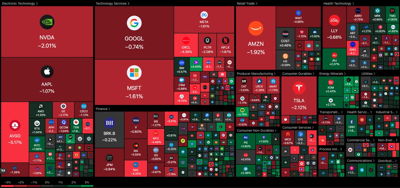 Looking at the tape today, the Magnificent 7 are taking a hit, with losses ranging from -0.85% for Google to -2.30% for Nvidia. The broader market picture isn’t faring much better.