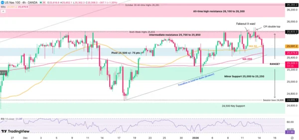 Nasdaq (CFD) 4H Chart – January 14, 2026 – Source: TradingView