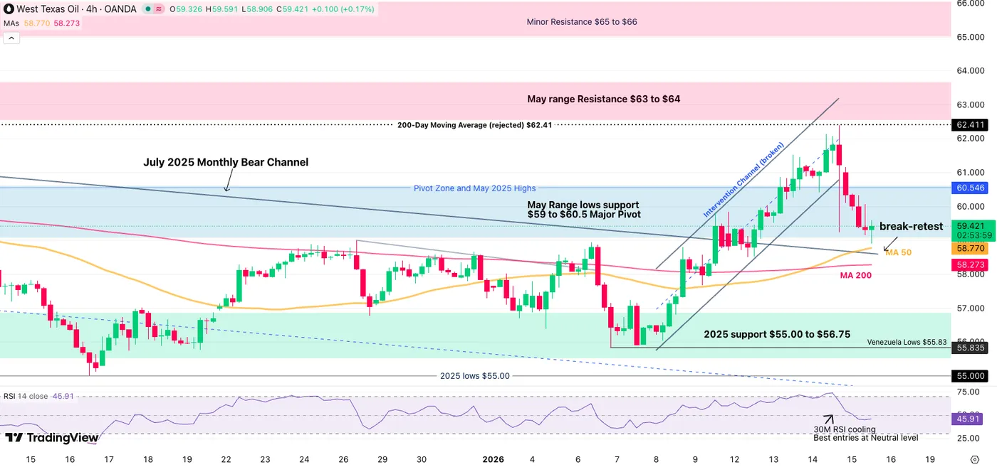 WTI Oil 4H Chart – January 15, 2026. Source: TradingView