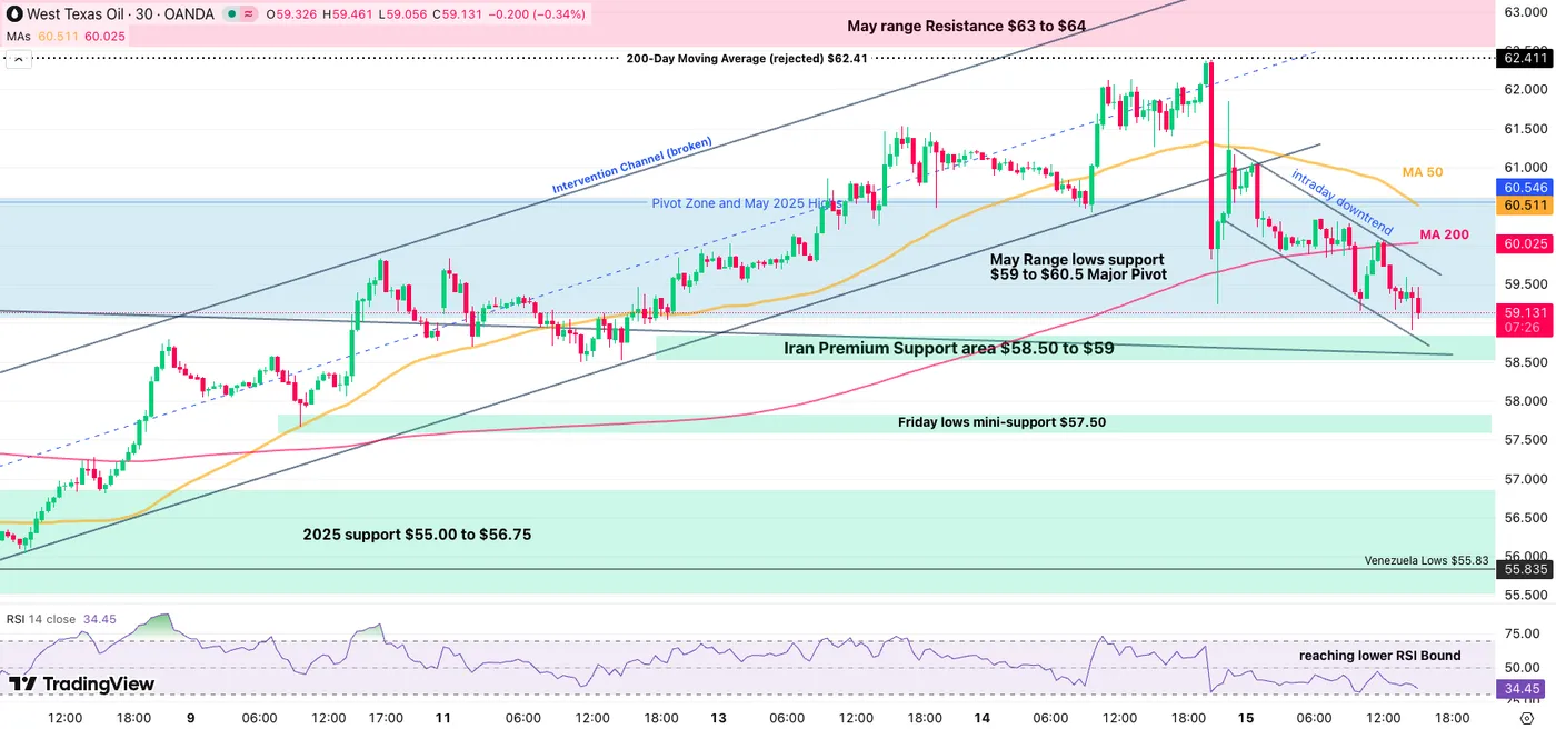WTI Oil 30M Chart – January 15, 2026. Source: TradingView