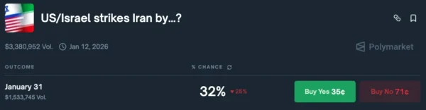 Betting Odds of a US intervention in Iran – Source: Polymarket