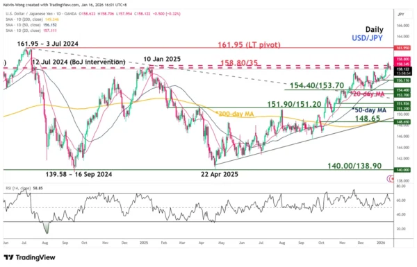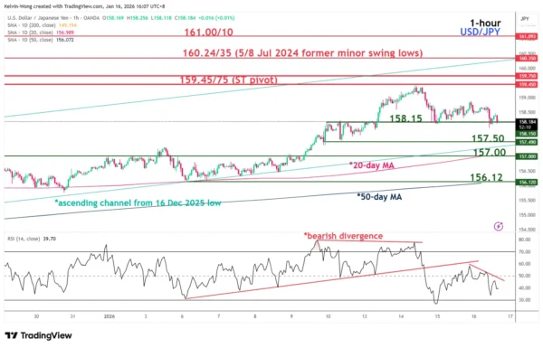 The “strongest form of verbal intervention” comes in today’s Asia session (Friday, 16 January 2026), where Japan’s Finance Minister Katayama reiterated Tokyo’s readiness to act against excessive yen moves and, for the first time this week, highlighted the possibility of a US-Japan joint intervention in the FX market ahead of a thinning liquidity environment today (ahead of the weekend as well as the closure of US stock market on next Monday, 19 January for Martin Luther King, Jr. Day).