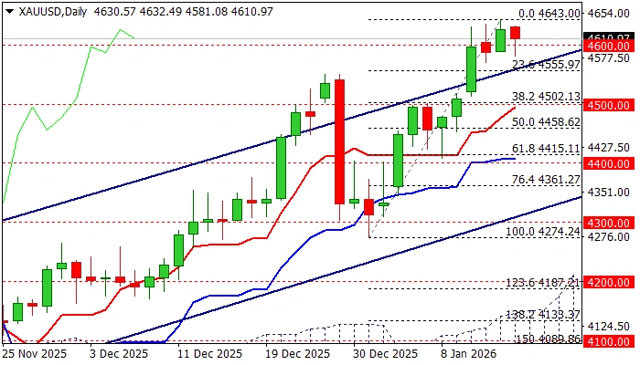 Dip below $4600, on the other hand, would open way for deeper pullback and expose next strong supports at $4550 (former tops of Dec 26/29) and $4500 (round figure).