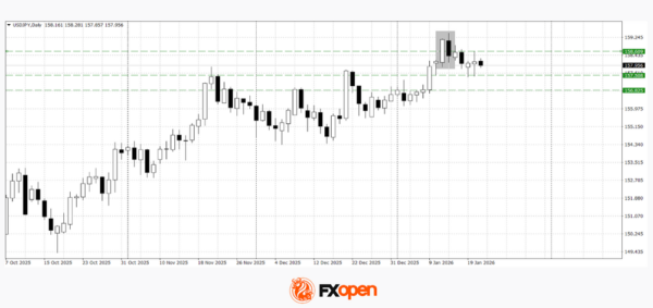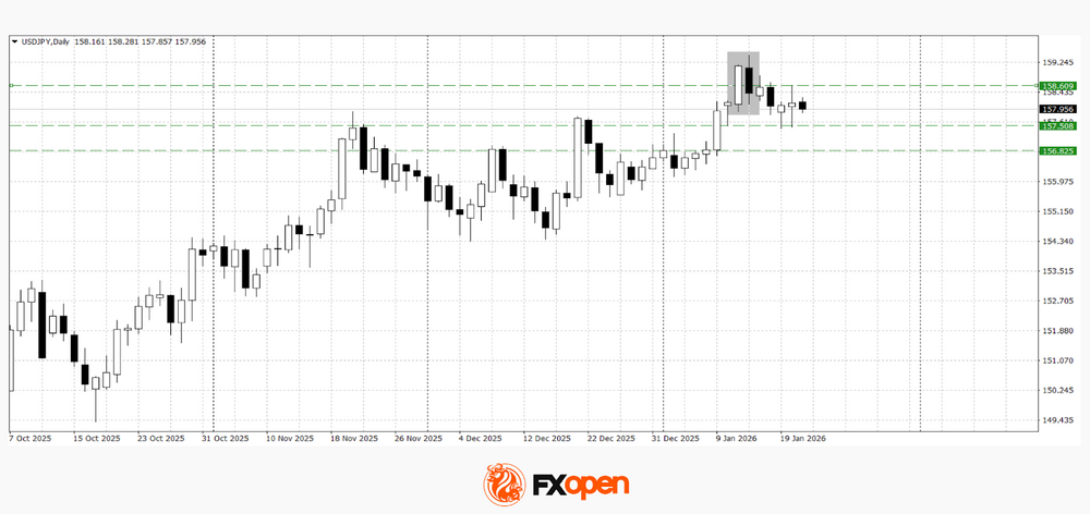 At the start of the current week, the USD/JPY pair slowed its downward movement that followed the formation of a “dark cloud cover” pattern on the daily timeframe. For several sessions, price action has been consolidating within a narrow range of 157.60–158.50, although this sideways movement may soon come to an end.