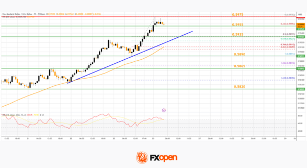 On the hourly chart of NZD/USD on FXOpen, the pair started a fresh increase from 0.5820. The New Zealand Dollar broke the 0.5900 barrier to start the recent rally against the US Dollar.