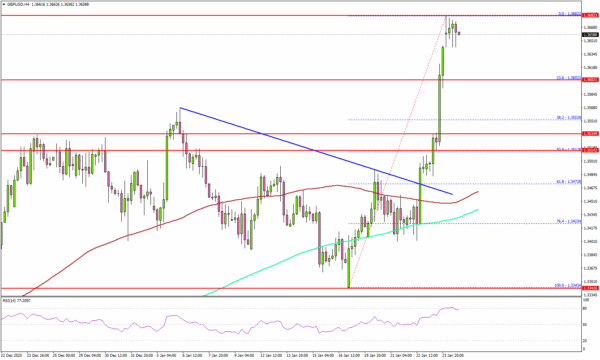 Looking at the 4-hour chart, the pair cleared many such as a bearish trend line, the 200 simple moving average (green, 4-hour), and the 100 simple moving average (red, 4-hour). The bulls even pumped the pair above 1.3620.