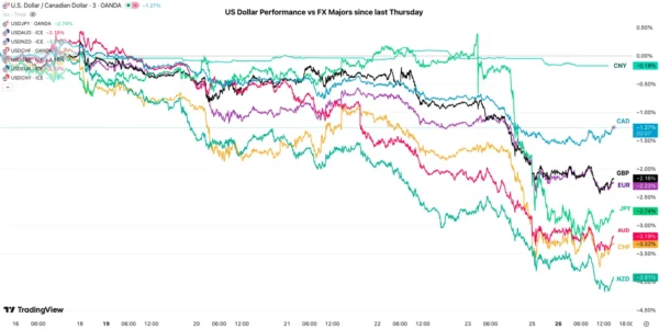 US Dollar Performance against other FX Majors since last Thursday – Source: TradingView