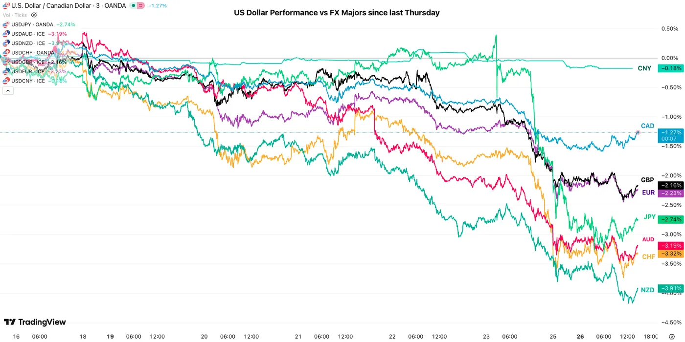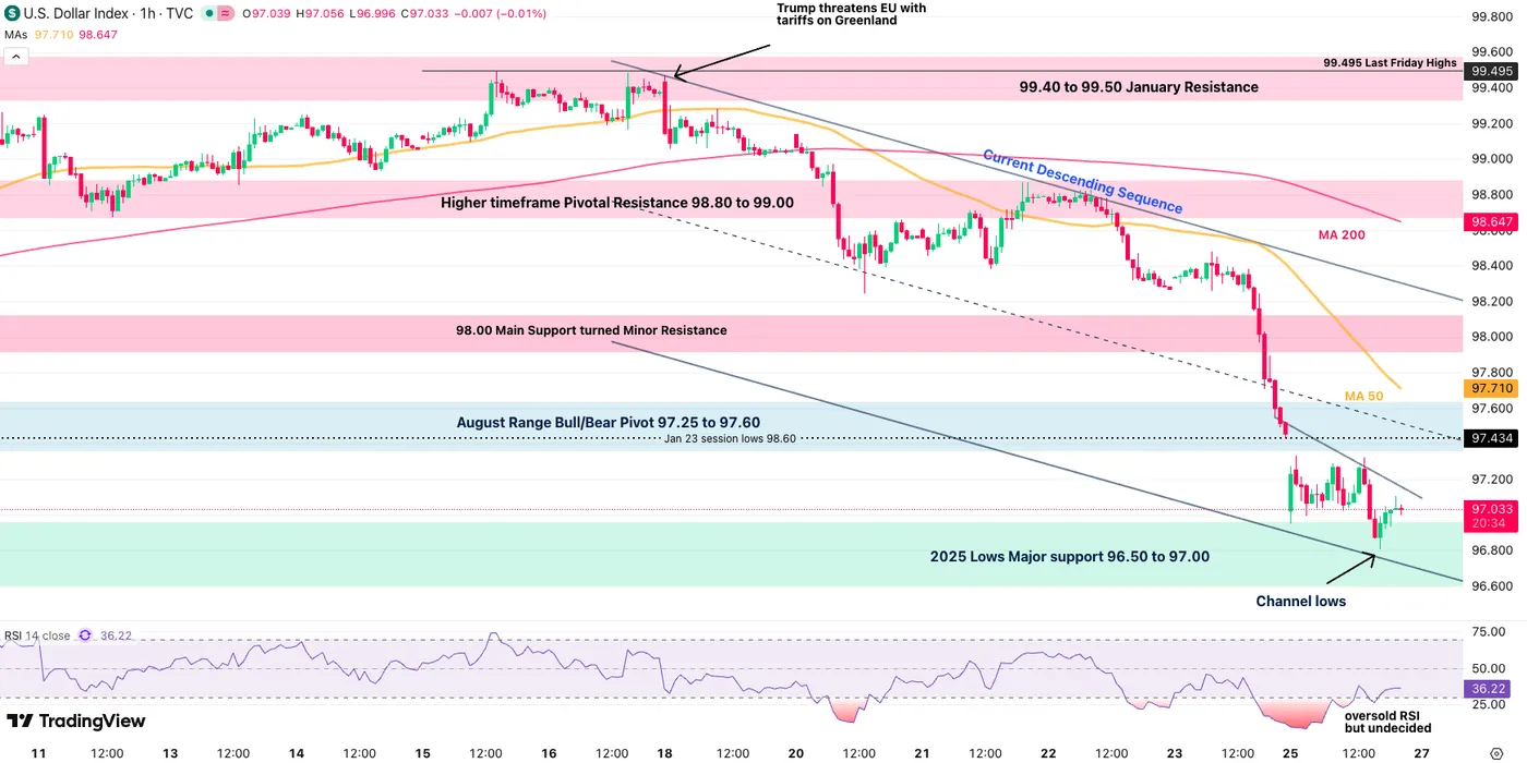 Dollar Index (DXY) 1H Chart. January 26, 2026 – Source: TradingView
