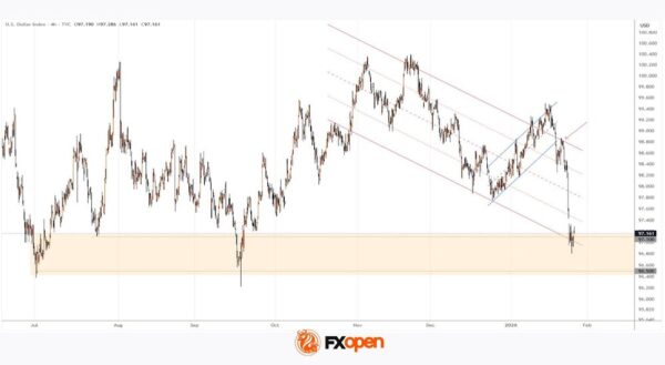 Moreover, the DXY index is now hovering near a long-term support zone from which the price rebounded twice in the second half of 2025.