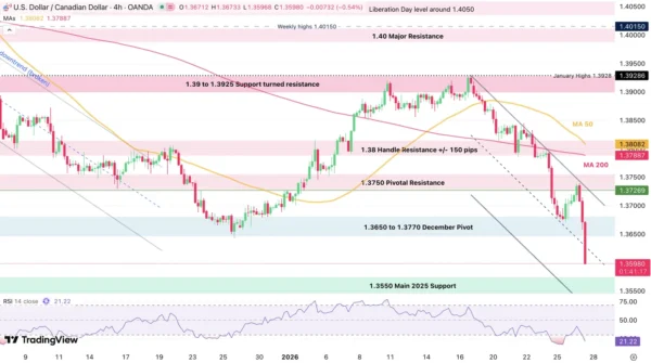 USD/CAD 4H Chart, January 27, 2026, Source: TradingView