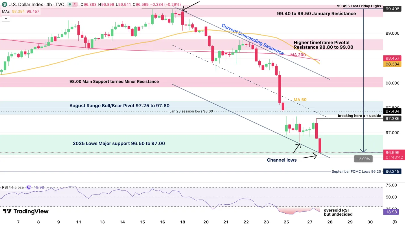 Dollar Index (DXY) 4H Chart, January 27, 2026 – Source: TradingView