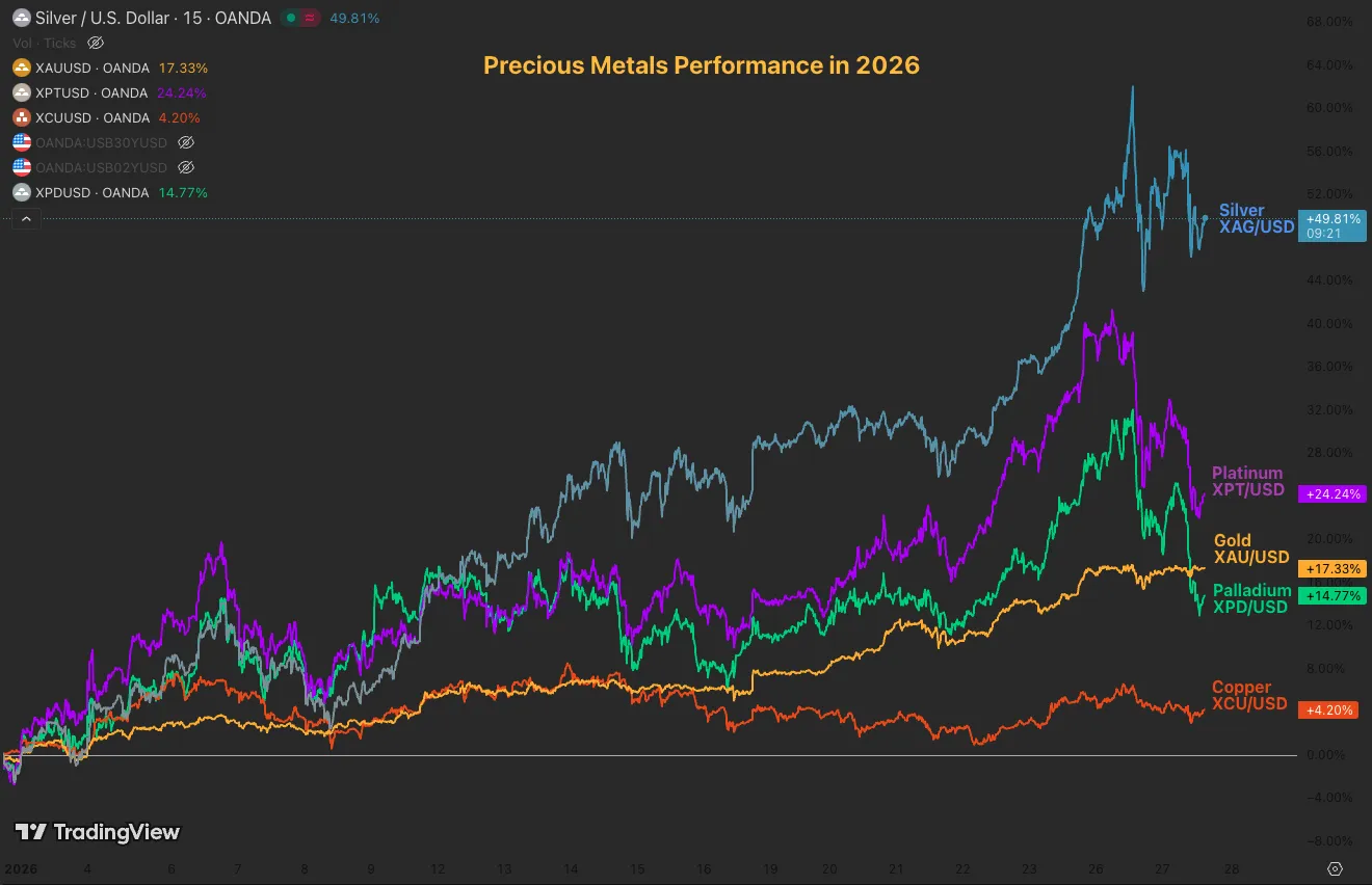 Metals performance since 2026 – Source: TradingView