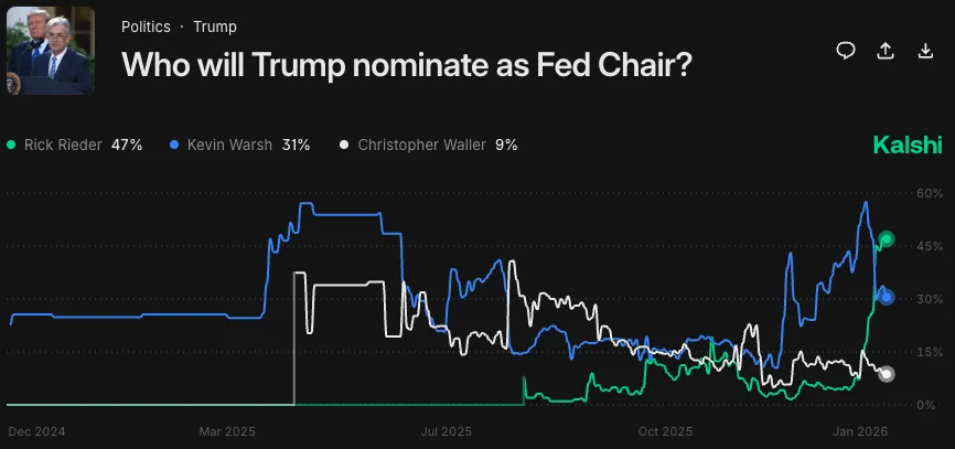 - Rick Rieder is now the favorite, not far in front of Kevin Warsh – This only looks at the current Prediction-Market odds.