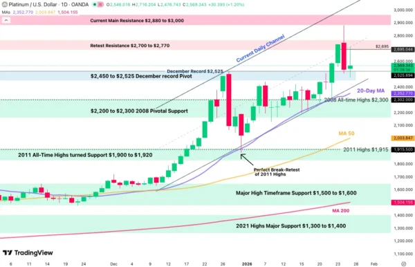 Platinum (XPT/USD) Daily Chart, January 27, 2026 – Source: TradingView