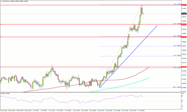 The Aussie Dollar started a major increase above 0.6800 against the US Dollar. AUD/USD cleared the 0.6880 hurdle to enter a bullish zone.