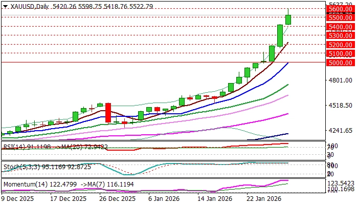 In this case, daily close below $5500 will be the minimum requirement to keep in play hopes of deeper pullback, with extension below $5400 breakpoint zone (near today’s low / Wednesday’s high / psychological) to boost negative signals.