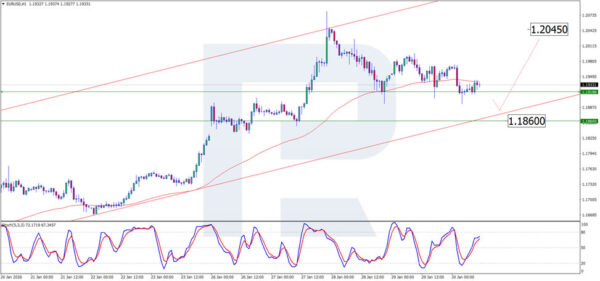 On the H1 chart, the pair is forming a correction after testing the resistance level. A rebound from the support level of 1.1860 would signal the formation of a new growth wave. The Stochastic oscillator’s signal lines are pointing towards level 80, suggesting the uptrend may continue. Subsequently, the target for growth may be 1.2045.