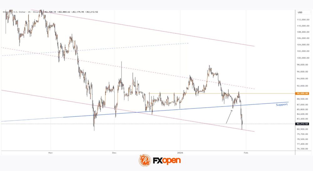 In our 21 January note, titled “Bitcoin Falls Below $90k: Why Does It Matter?”, we confirmed the relevance of a system of two trend channels and highlighted that the price was sitting at the lower boundary of a long-term ascending channel, which had previously acted as strong support in 2025.