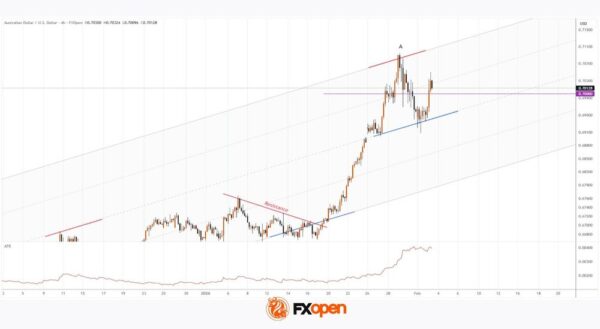 As a result, the current rise in AUD/USD appears to be an initial emotional response to the news. There is a risk that the momentum may fade as the price approaches the highs near the A peak, where “smart money” could resume selling.