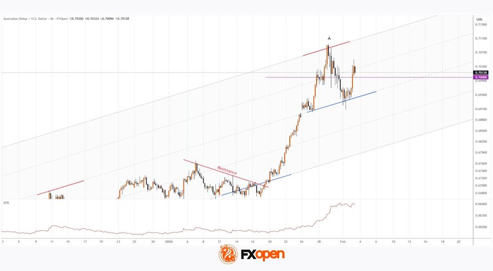 As the AUD/USD chart shows, the Australian dollar is holding above the psychological 0.700 level today after a bullish impulse triggered by the market’s reaction to the Reserve Bank of Australia’s (RBA) decision to raise the Cash Rate from 3.60% to 3.85%.