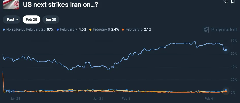 Odds for a US strike in Iran – Source: Polymarket. February 4, 2026