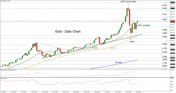 Gold is rising over 1% today, building on Friday’s 4% gain, to trade back above the key 5,000 key threshold for the first time in almost a week, helped by bargain hunting, lingering concerns over US-Iran tensions and a softer dollar. Meanwhile, investors await key US economic data due this week to gauge the US interest rate trajectory.