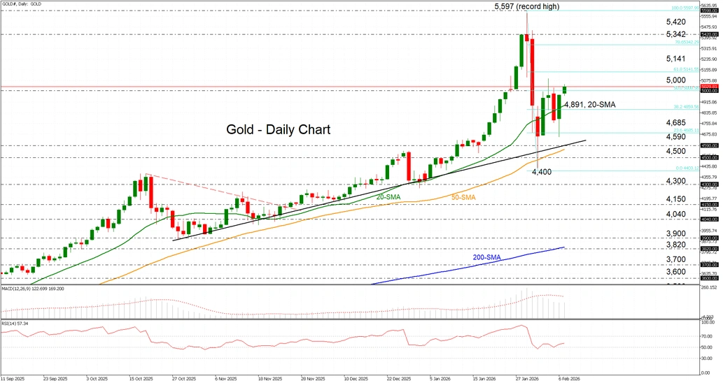 This suggests the market could still face a pullback from current levels, which represent a strong technical barrier. Initial support lies at the 20-day simple moving average (SMA) at 4,891, a break below which could expose 4,685, which capped losses last week, followed by the medium‑term ascending trendline near 4,590.