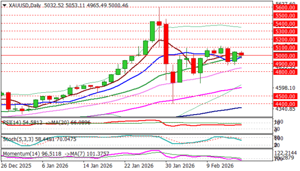 Markets wait for fresh signals that would define near-term direction, with key technical levels standing at $4900 zone and $5100 zone.