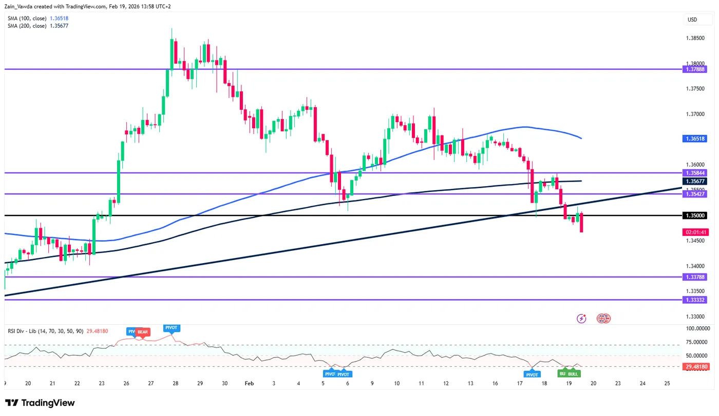 GBP/USD Four-Hour Timeframe, February 19, 2026