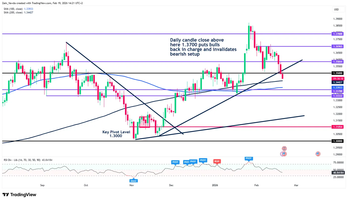 GBP/USD Daily Timeframe, February 19, 2026