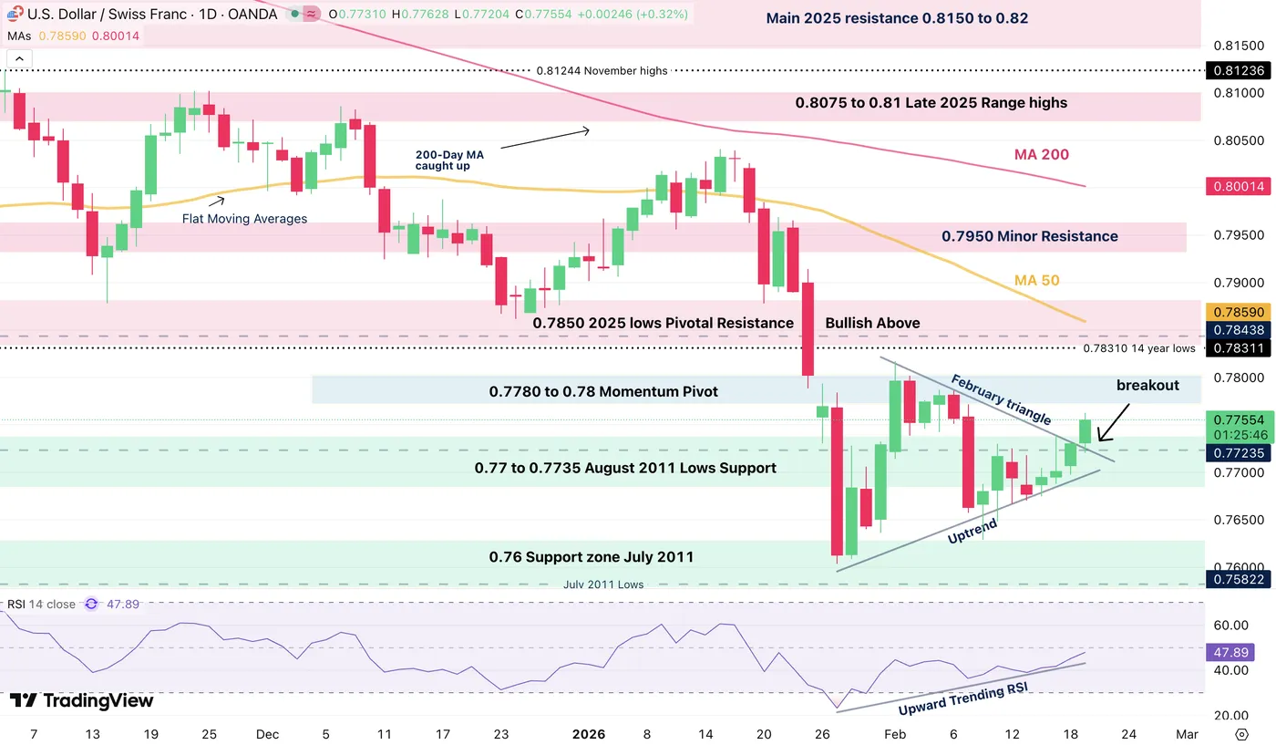 USD/CHF Daily Chart – Source: TradingView. February 19, 2026