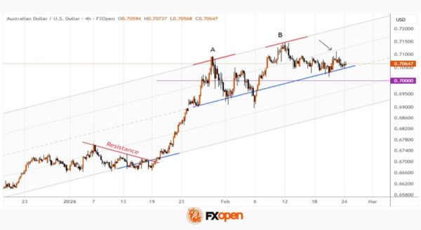 In that case, a break below the channel’s median line cannot be ruled out, opening the way for a test of the psychological 0.7000 level.