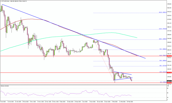 • ETH could extend losses and revisit $1,750 or even $1,600.