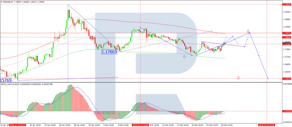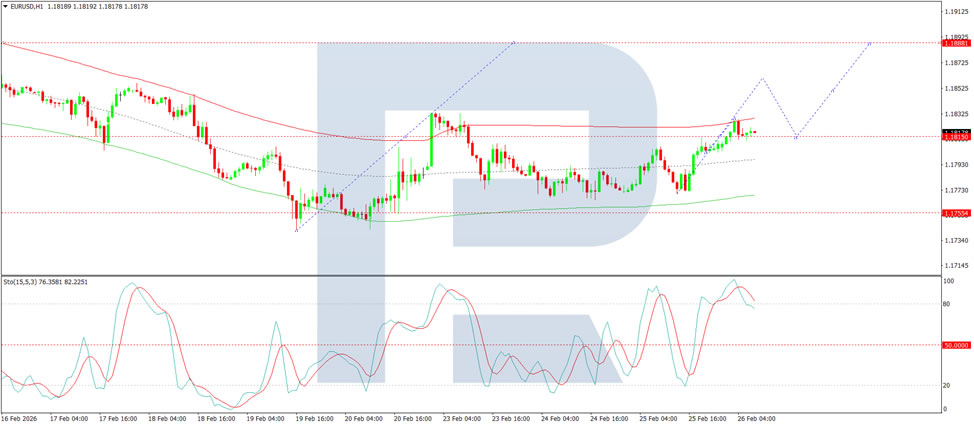 In summary, EUR/USD continues its gradual recovery as persistent uncertainty surrounding US tariff policy weighs on dollar sentiment. While Trump’s Congressional address offered no clarity on the trade front, and ongoing US-Iran negotiations add a layer of geopolitical caution, the technical picture remains constructive. The pair is building momentum within a consolidation range, with upside targets at 1.1862 and 1.1888. Both MACD and Stochastic indicators support the bullish bias, suggesting further gains are likely in the near term. The key level to watch is 1.1818 – holding above this support keeps the upward trajectory intact, while a break below could signal a temporary pause. For now, the path of least resistance appears higher.