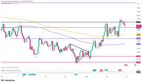 WTI Crude Oil Daily Chart, February 26, 2026