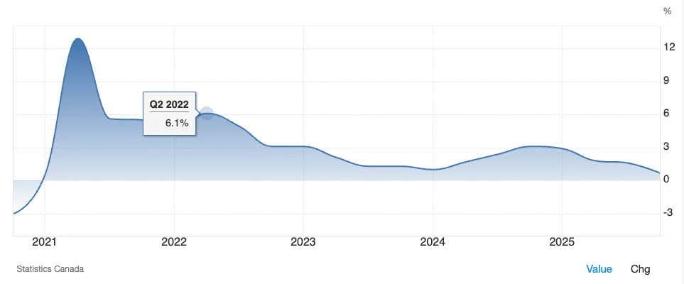 Canadian GDP Growth since end 2020 – Courtesy of Trading Economics