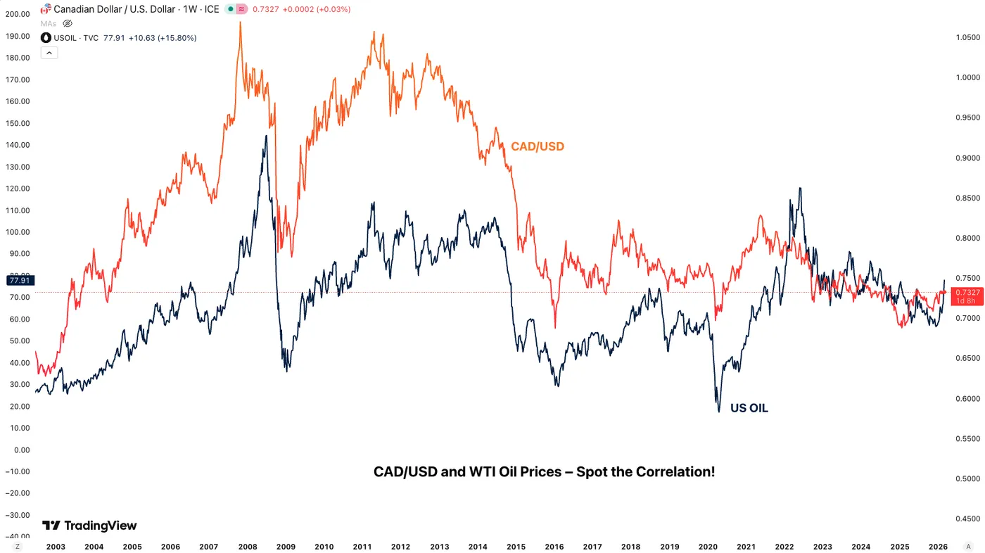 Canadian Dollar and Oil Tight Correlation – Source: TradingView