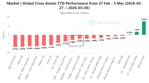 Fig. 1: Key global cross-asset performances from 27 Feb 2026 to 5 Mar 2026 (Source: MacroMicro)