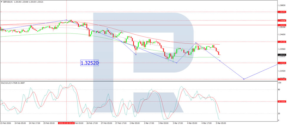 On the H4 chart, EUR/USD is forming a compact consolidation range around the 1.1600 level. The current structure suggests a high probability of a wave developing towards 1.1533, with scope to extend further to 1.1500.