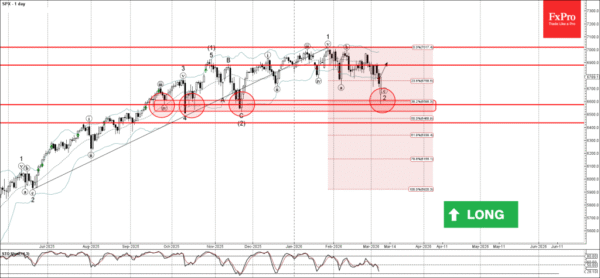 The upward reversal from the support level 6600,00 stopped the previous short-term ABC correction 2 from January.