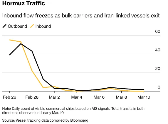 Strait of Hormuz Sea Traffic since February 27 – Source: Bloomberg
